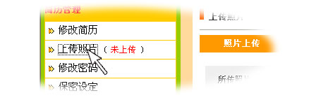 | 注冊成功后系統(tǒng)會自動跳轉(zhuǎn)到個人管理頁面,點擊“上傳照片”,上傳不大于100KB的照片,這樣更容易讓招聘企業(yè)青睞; |